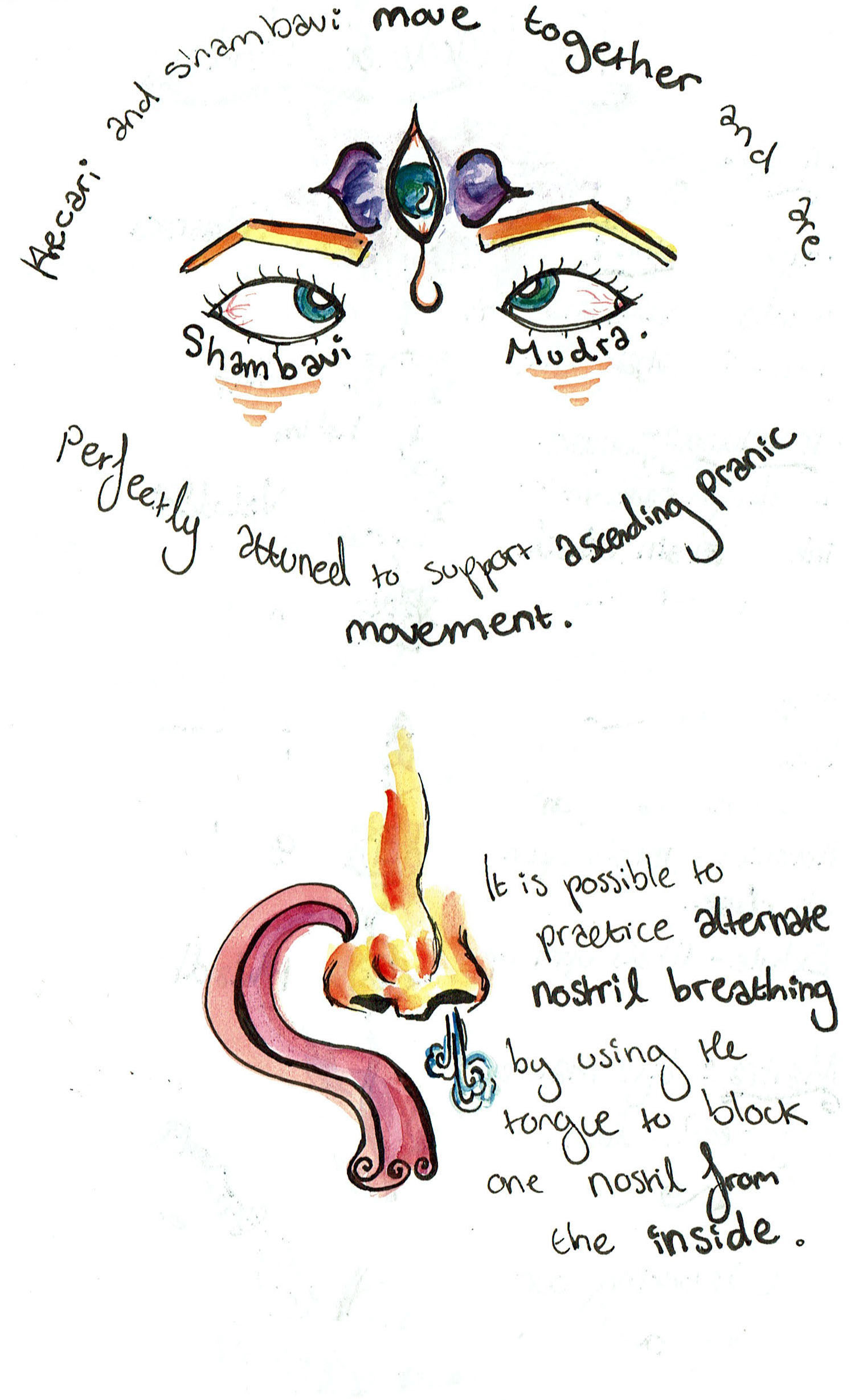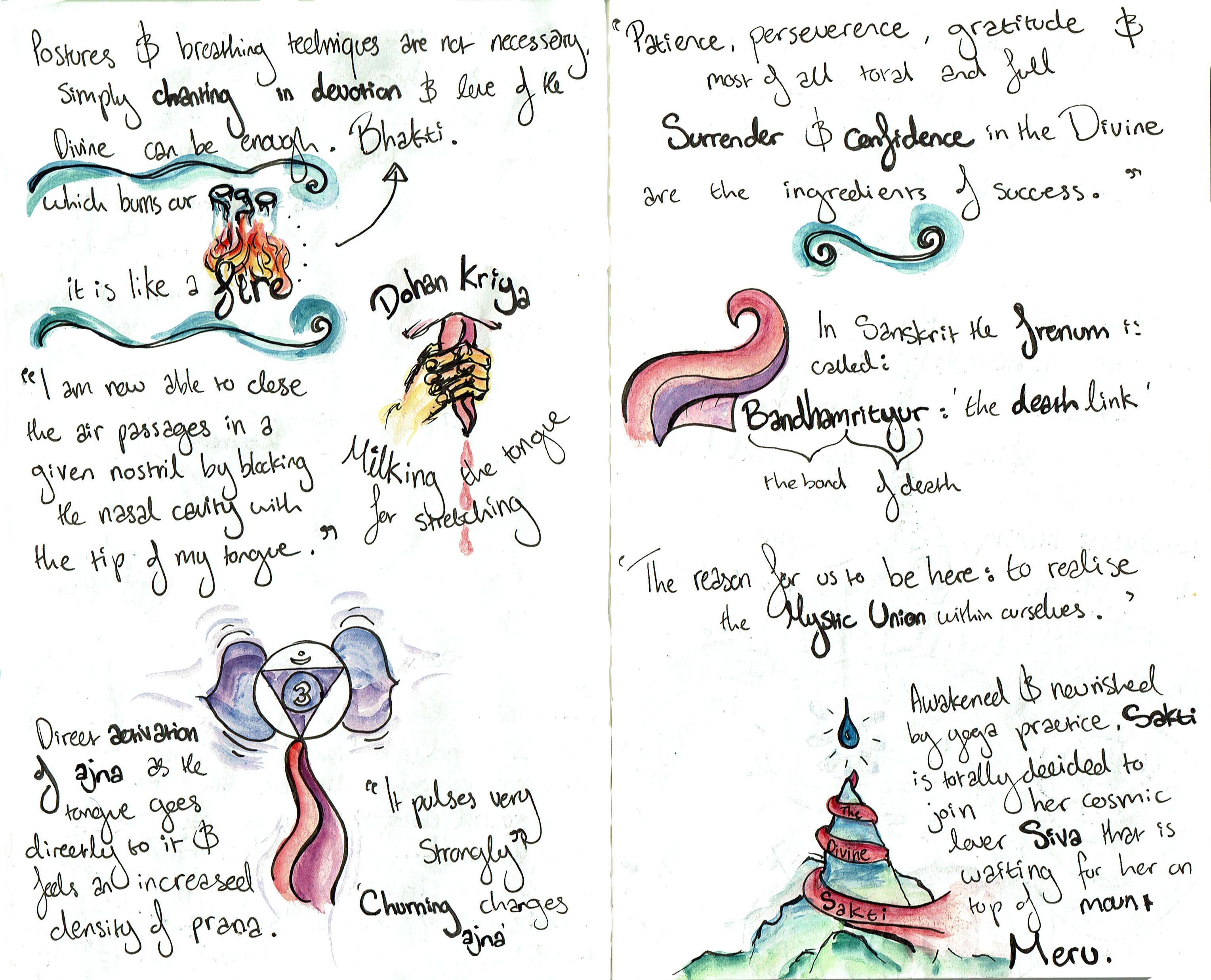 Illustrations of an article written by Yogi Maheshwar on his yogic practice of Khecari Mudra.